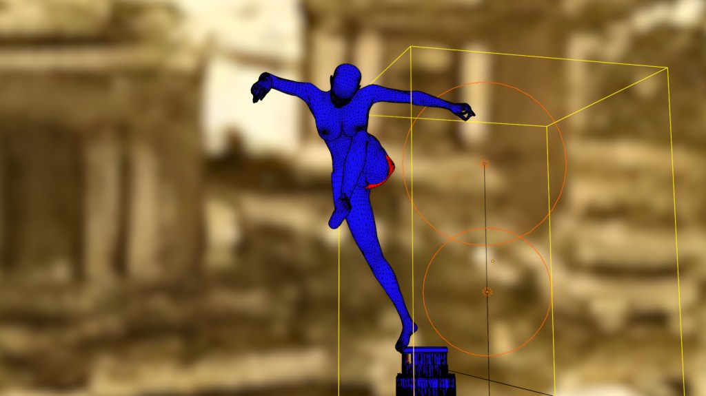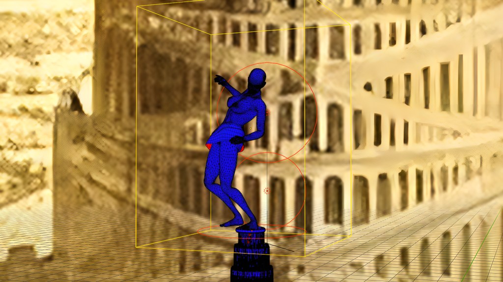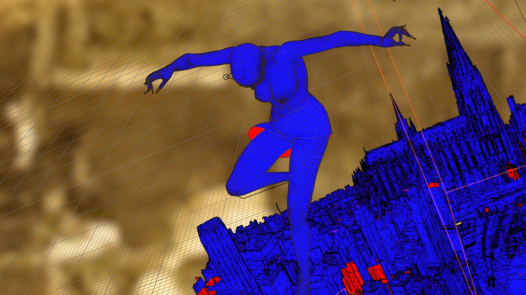 藍色的網格城市是由真實的衛星系統所精準建構的3D建築物所混合成的,這些建築物包括象徵現代巴別塔的紐約帝國大廈、台北101大樓、台北中正紀念堂、巴黎鐵塔、聯合國、歐盟大樓等。「夏娃克隆」在操縱整個城市後,最後一躍而下進入不同的城市與街道內,如鬼魂般到處穿梭與尋覓,最後再回到巴別塔的高處原點。