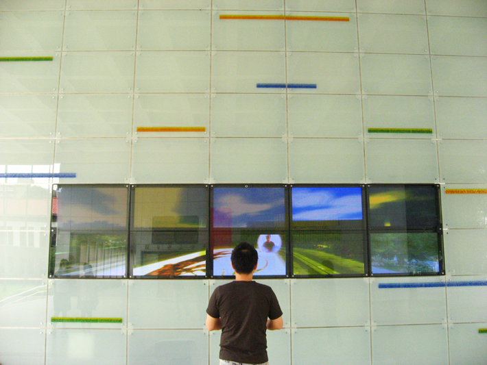 媒材: 3D互動藝術作品、PDP電漿螢幕、網路攝影機、互動系統、不鏽鋼管、電腦、監視系統、玻璃纖維強化塑膠