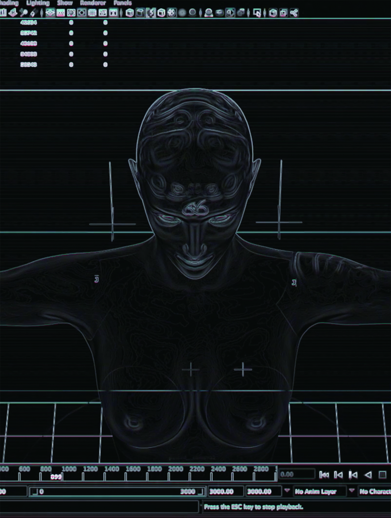 《夏娃克隆創造計畫l》此系列乃挪用達文西維特魯威人(Vitruvian Man)的手稿與我「夏娃克隆」全身每一個發展的過程作結合,回朔再現「夏娃克隆」如何被我以電腦3D創造的過程與每一時期的形體,從我發想繪製的線稿,到進如電腦以3DMaya軟體建構的人形網格,到逐步貼圖、仿人的膚色、仿金屬色、仿全像的綠光色、仿金頭大偶像,以360度自轉而展現每一階段的形變,並且把在電腦空間以電腦鏡頭旋轉身體每一角去呈現「夏娃克隆」如何被形塑的過程,從單線構圖、建網格、建骨架、貼材質、刻紋路到調動作的過程⋯⋯,的確可表現它是如何因著人類的創造慾望逐步被建構成為科技軟、硬體的數位產物,此慾望我認為與科學家或人類企圖改造、模仿、挑戰所有神原創的科技文明從發想到一步步的實驗(實踐)的過程很類似。