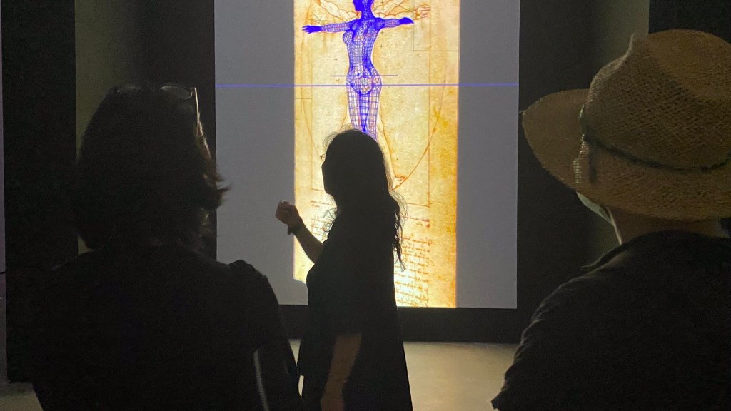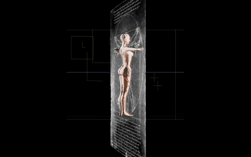 因着3D錯視效果,「夏娃克隆」彷彿從達文西的手稿浮現成立體的3D身體,再配合音效表現一種神秘與詭譎感。影片中段,特別呈現「夏娃克隆」如何在電腦三度空間內被檢視,如放大、縮小、翻轉等,也刻意保留電腦介面、鏡頭符號、icon、時間軸等,將這種3D動畫的製作過程轉譯成創造「夏娃克隆」的過程與觀念。另外,原達文西的鏡像文字也被巧妙地更換成以「達文西鏡像字體」呈現的聖經章節,定義了「夏娃克隆」的身份與命運,多層次呈現了「維特魯威人」與「夏娃克隆」的平面手稿與立體電腦3D動畫的視覺對照;黃金比例的男女形體的對位,聖經章節與符號的指涉性,以及達文西與林珮淳在兩種不同時空、媒材、性別與創造慾望下所創造的「維特魯威人」與「夏娃克隆」之間的對照與對立關係。