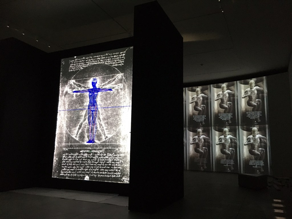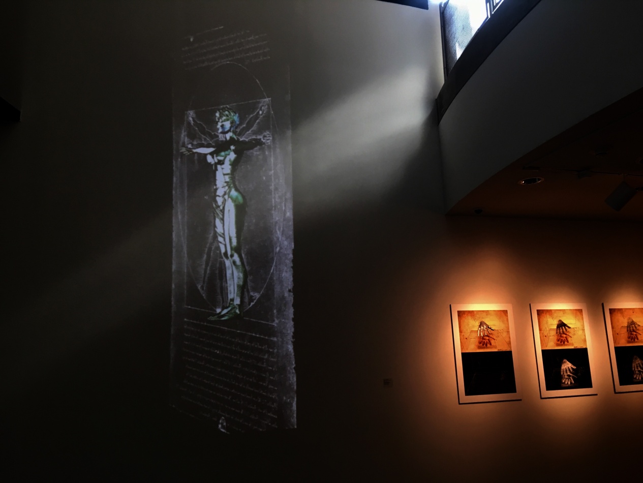 之後我又挪用達文西手稿對人體黃金比例之研究,除了指出「夏娃克隆」的完美比例外,更將達文西強烈創作慾望與驚人的企圖心轉譯在「夏娃克隆」被生產之創造過程上,他的素描手稿除了記錄人體比例、形體外,其實也暗示人類是宇宙天地之掌握者(以人為本)之思想,而我「夏娃克隆」即批判人類以己為中心挑戰神原創之本質,藉此作品討論了藝術與科技之間的聯想、對照與互文的關係。影片中我巧妙的將我夏娃克隆的創造計劃文字所應用的聖經文字用「達文西鏡像字體」置於人體下方並簽上我名字。