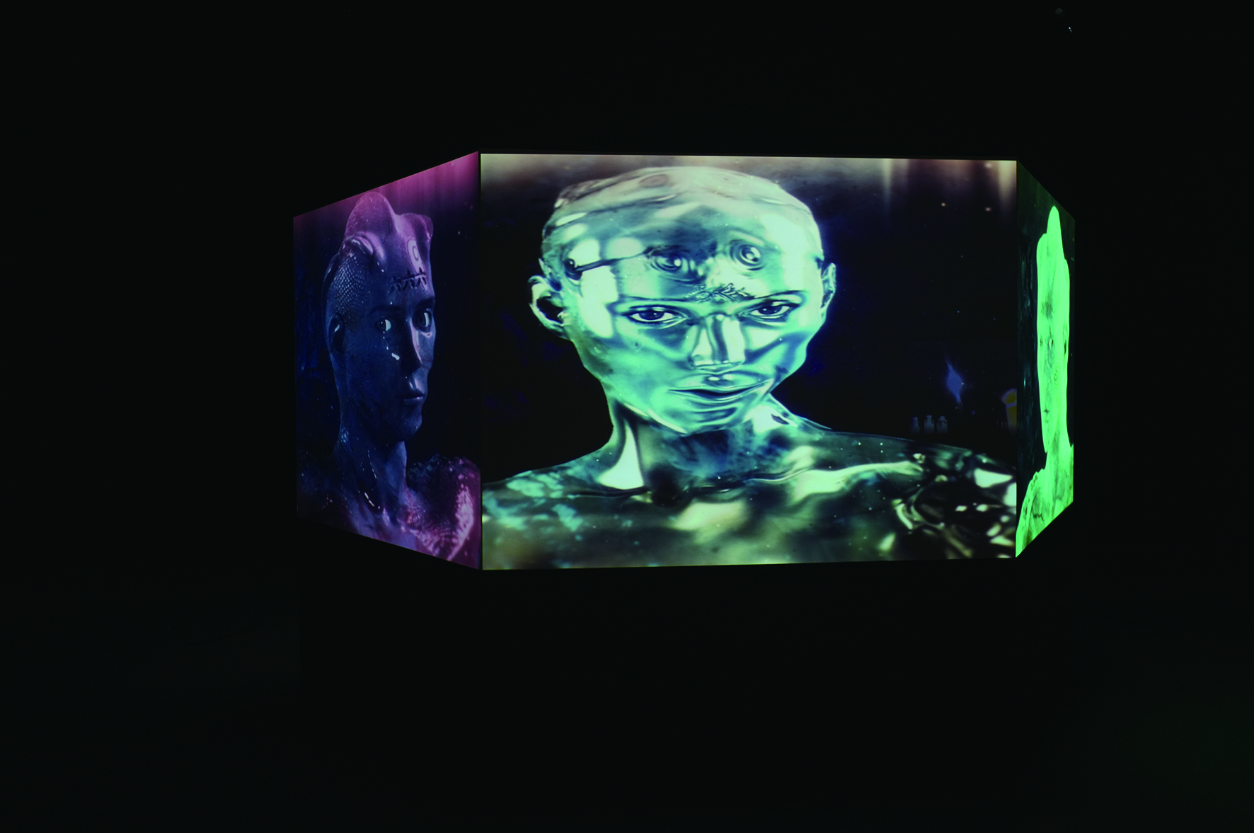 這足以與觀者作親密即時的大型影音互動裝置,展現了互動新媒體藝術的魅力,如六面投影體如水族箱存放了六種不同的質感(如金、銀、水晶、蛇皮等)、色澤(藍、綠、紫等色)與印有不同語言的666數字(中文、阿拉伯文、日文、英文等)於「夏娃克隆」額頭的影像,的確帶給觀者一種莫明的好奇與吸引力,猶如面對龐然大物的異種,一種緊張與不安的恐懼感油然而生,當觀者遠看作品時,「夏娃克隆」是靜止不動的,又當靠近作品時,觀者會驚訝發現「夏娃克隆」突然轉動,且會因著觀者左右移動而改變她的身體姿勢,甚至眼睛會盯著觀者的眼睛,這種與「夏娃克隆」的雙向親密關係,彷彿觀者正控制著她,卻也彷彿觀者正被她吸引無以遁逃。背景聲音呈現水中的氛圍以及左右移動的聲響,觀眾在環繞六面投影的環場中,猶如置身於詭譎的環境中與巨形「夏娃克隆」作對話,帶給觀眾反思科技文明美麗背後所暗藏的危機。