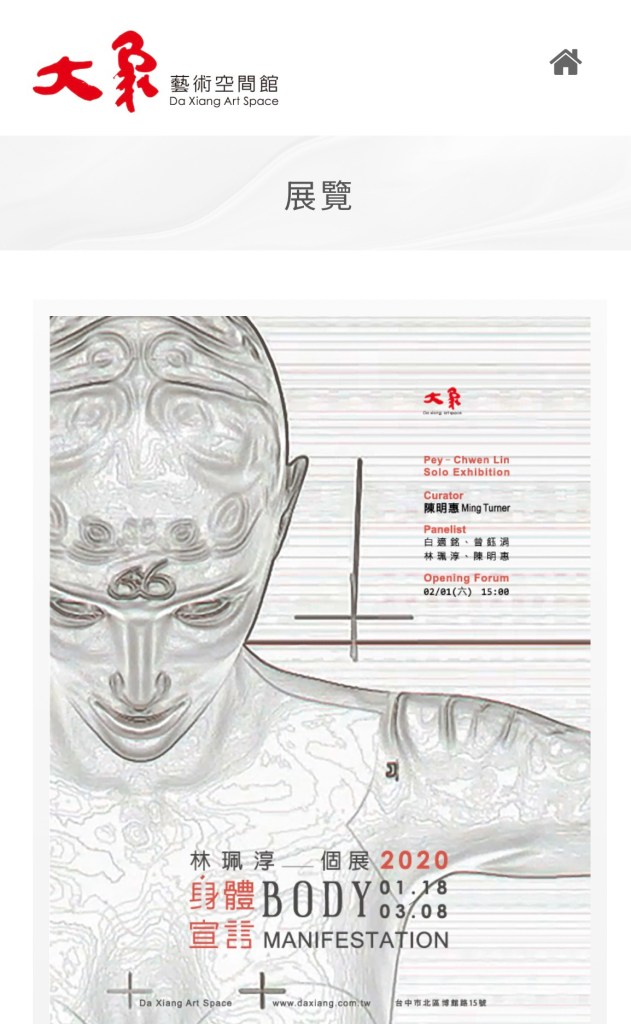 Body Manifestation : Pey-Chwen Lin Solo Exhibition”, Da Xiang Art Space, Taichung, Taiwan