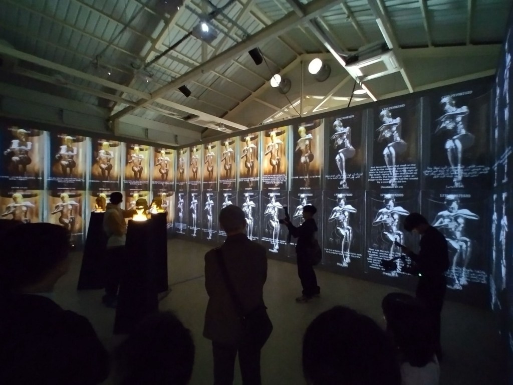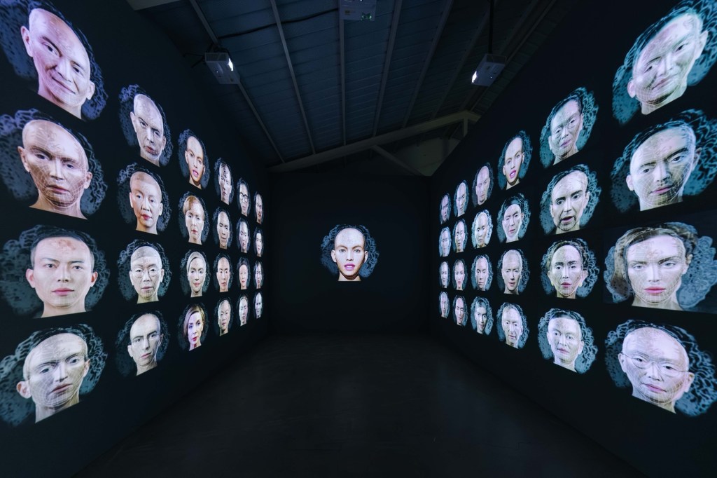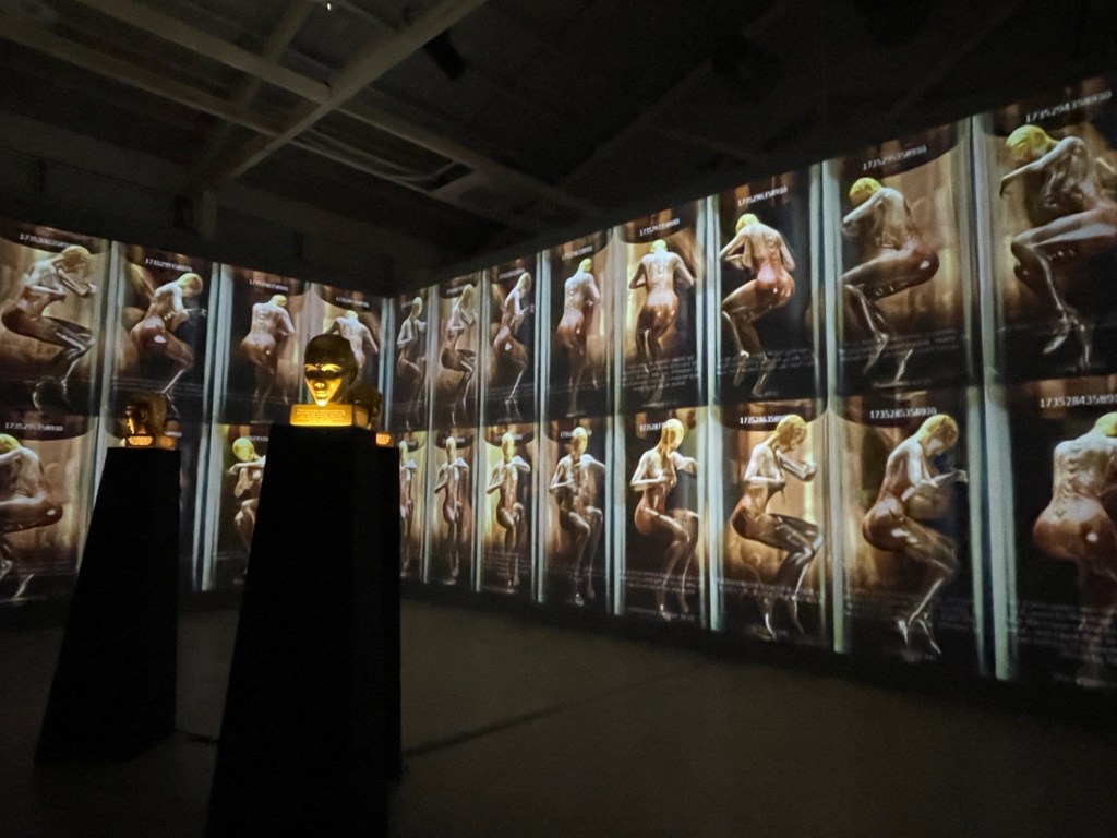 觀眾步入中原文創園區14號倉庫,可穿梭於〈林珮淳的 AI 伊甸園〉六個場景,從〈夏娃克隆〉系列到 AI 新作,見證她如何以影像、光影與科技,探問當代人類正試圖以科技重塑身體、感知與記憶的種種邊界。