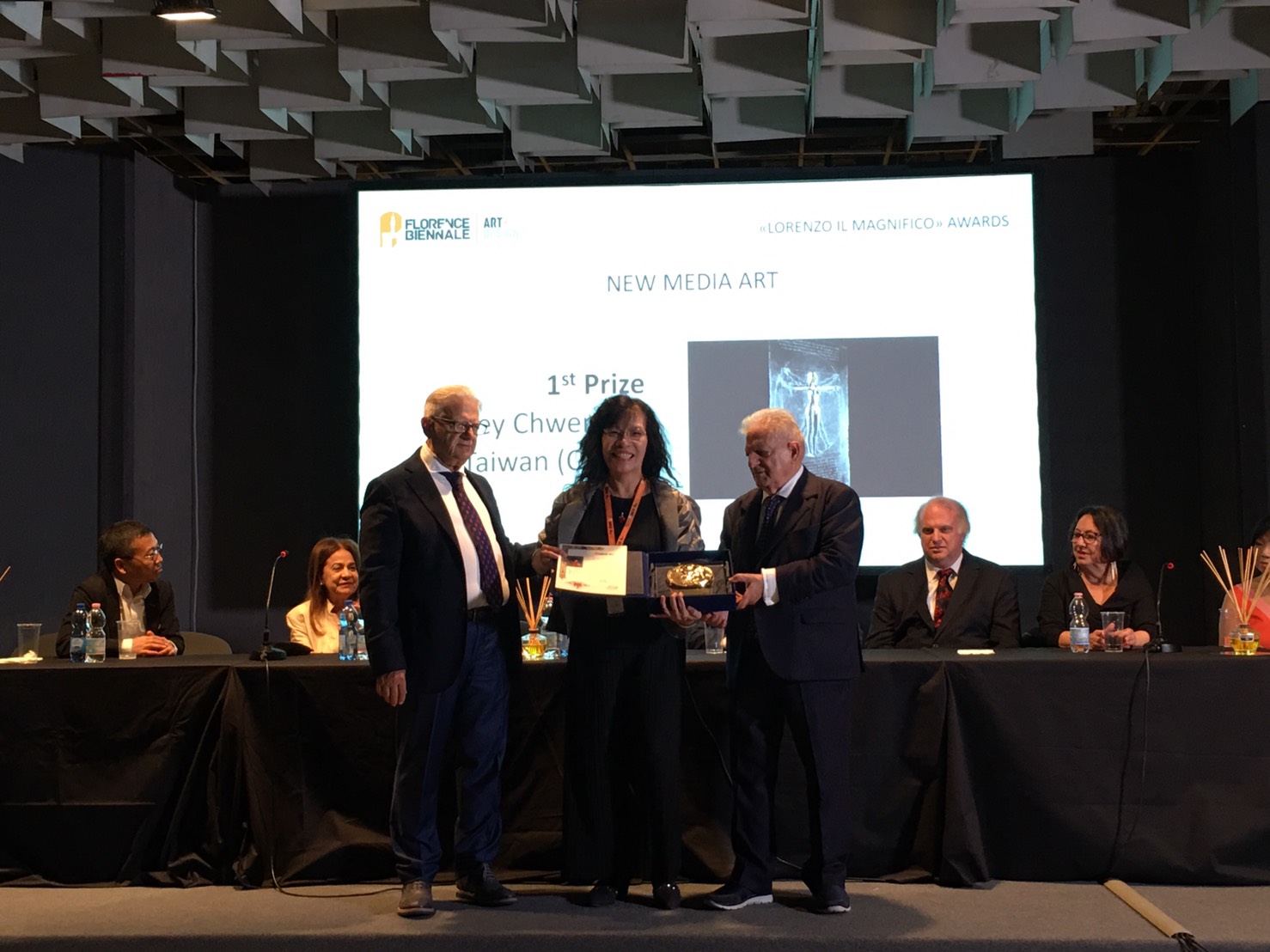 The first Asian artist to receive the First Prize in the “New Media Art” category at the 2019 Florence Biennale in Italy, and was awarded the prestigious “Lorenzo Award.”
