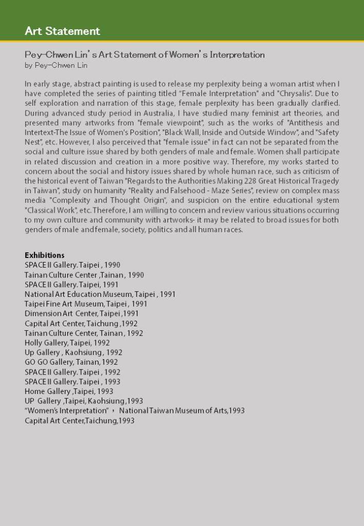 Catalog of Pey-Chwen Lin Solo Exhibition